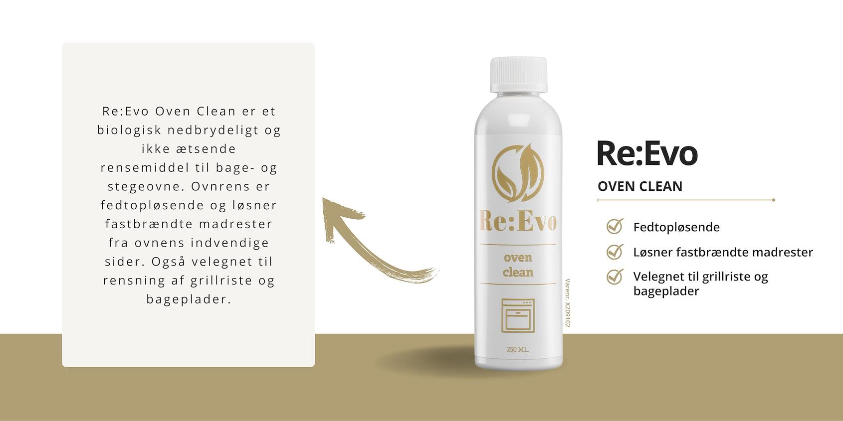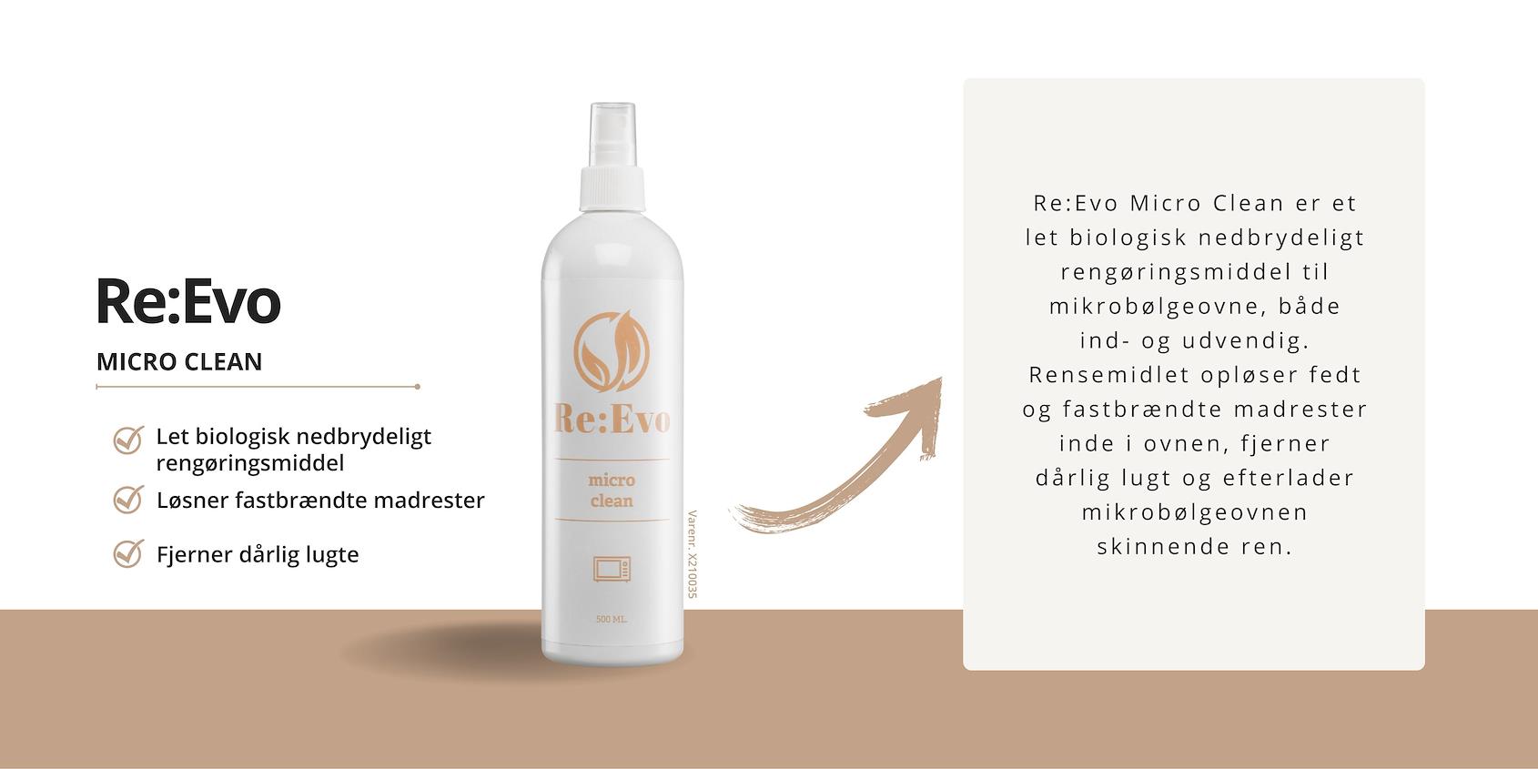 Vores biologisk nedbrydelige rensemidler fjerner ubesværet madrester og belægninger, samtidig med at de skåner miljøet. Uanset om det er ovnen, mikrobølgeovnen, køleskabet eller vaskemaskinen, er Re:evo produkterne den ultimative løsning.