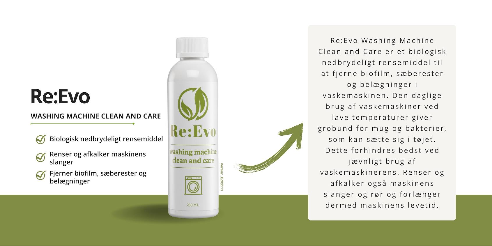 Re:evo er den ultimative grønne plejeserie, hvor effektiv rengøring møder miljøbevidsthed. Vores omfattende produktserie er udviklet med et mål om at, beskytte og livsforlænge dine husholdningsapparater og samtidig skåne vores miljø.